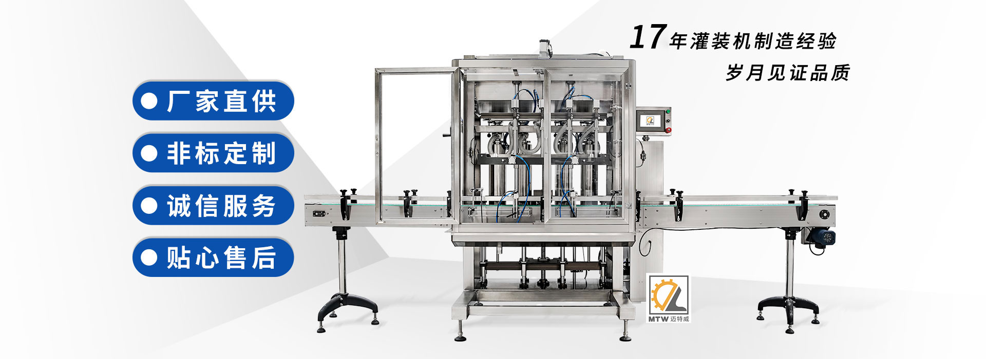 邁特威自動化設(shè)備(天津)有限公司坐落于素有京津明珠之稱的天津·武清區(qū),是國家高新技術(shù)企業(yè),專注生產(chǎn)、研發(fā)、銷售全自動灌裝機(jī)、旋蓋機(jī)、封口機(jī)、貼標(biāo)機(jī)等系列產(chǎn)品,立足京津冀、服務(wù)全國,遠(yuǎn)銷海內(nèi)外,團(tuán)隊(duì)由行業(yè)高技術(shù)人士組成,為國內(nèi)外食品、日化、糧油、醫(yī)藥等企業(yè)提供滿意的包裝解決方案。 查看詳情